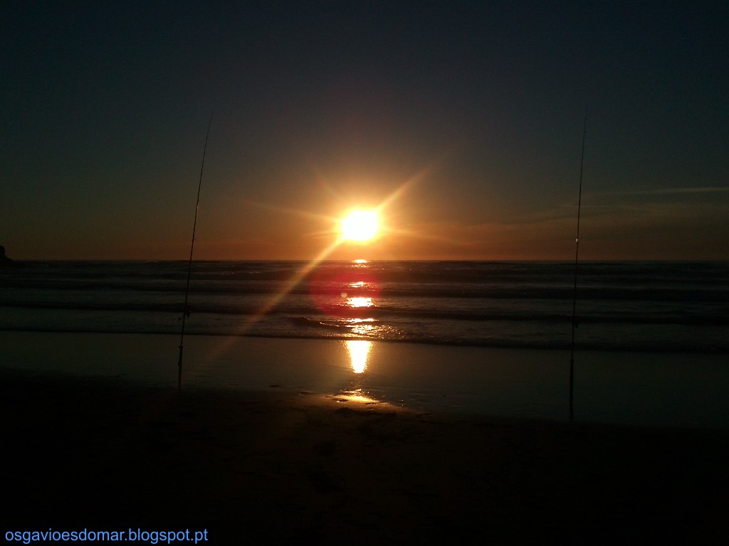 Monto as canas nas calmas, lanço a primeira, vou a lançar a segunda, Truz... Fio partido...#%#$ A coisa está a começar bem, eu que queria aproveitar o pôr do sol para relaxar, enfim, toca a fazer novo chicote e montagem... Começou a vir a pequenada do costume em que foram libertados nas devidas condições!